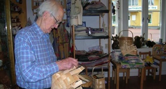 Det bjuds en intensivkurs i klass 6 i Våmhusskolan så att skolungdomen får pröva på korgtillverkningen.